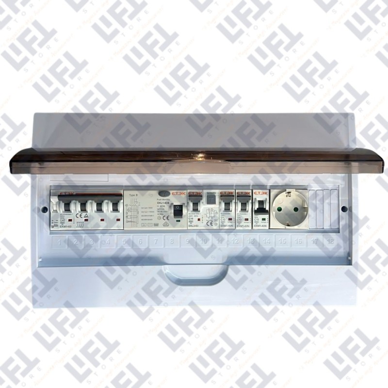 Quadro Distribuzione Locale Macchina 400V/230V 40A - IP40 18M - Completo di Diff. TIPO B (Inverter) e Presa - Cert. EN 61439-2